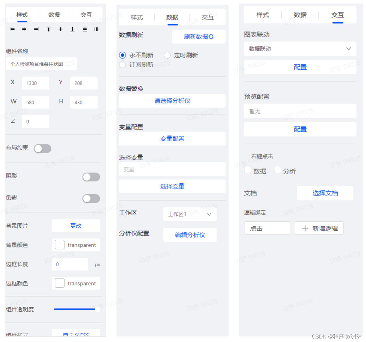 smardaten提供多种可视化组件,在画板式大屏上自由布局,进行可视化大屏设计。组件层支持细粒度的样式配置满足统一视觉风格要求,图表支持数据定时/订阅刷新,各组件支持配置交互联动,让大屏数据交互更加丰富。