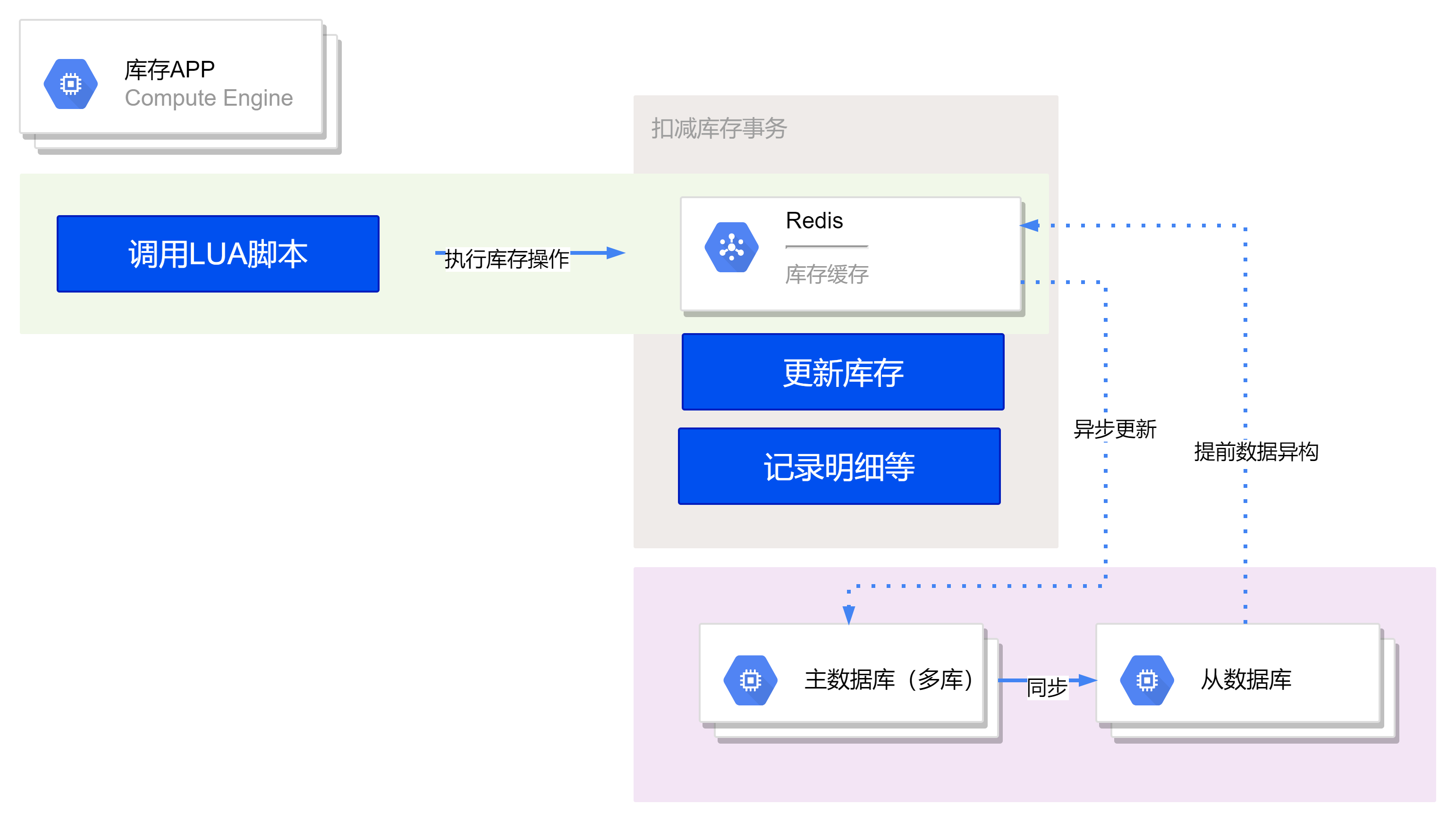 在更大规模,针对单一商品的超高并发扣减的库存集群中,可能基于数据库内核的改造优化还无法满足业务需求。单一商品的超高并发扣减可能会影响到同一数据库实例上的其他商品扣减,同一个数据库实例上也可能存在多个热点商品造成互相影响,这时就考虑引入基于缓存的分桶扣减方案。