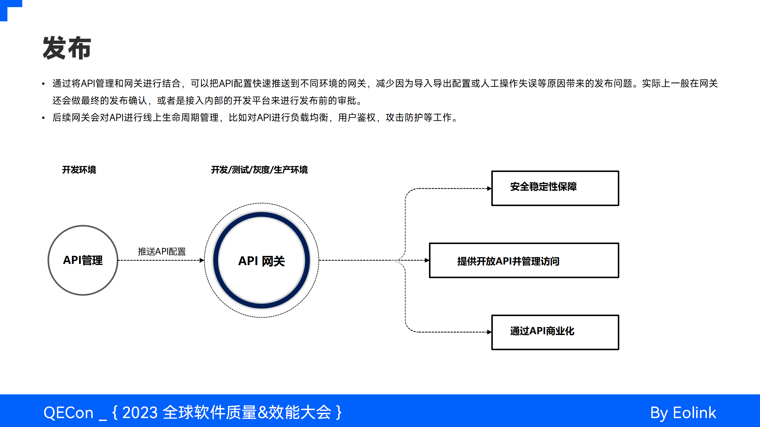 - 将 API 的开发和上线环节打通,实现 API 的快速发布,并通过网关等产品进一步管理 API 的流量,提升 API 的性能,安全和稳定性。