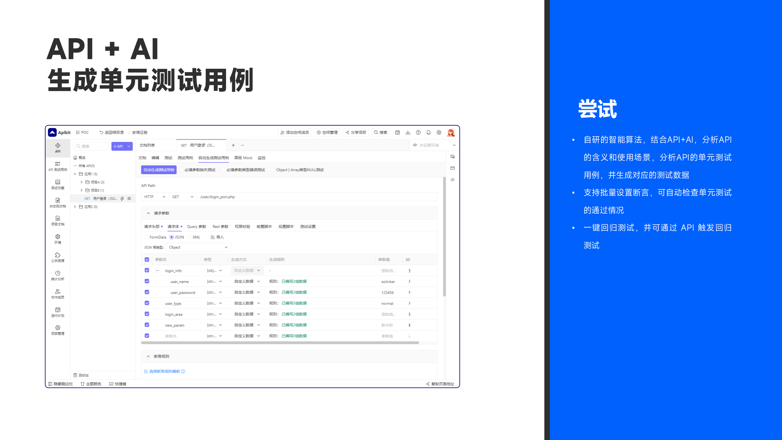 - 基于文档与测试驱动,并联动前后端测试团队,持续管理 API 资产并且提升 API 的研发效能。