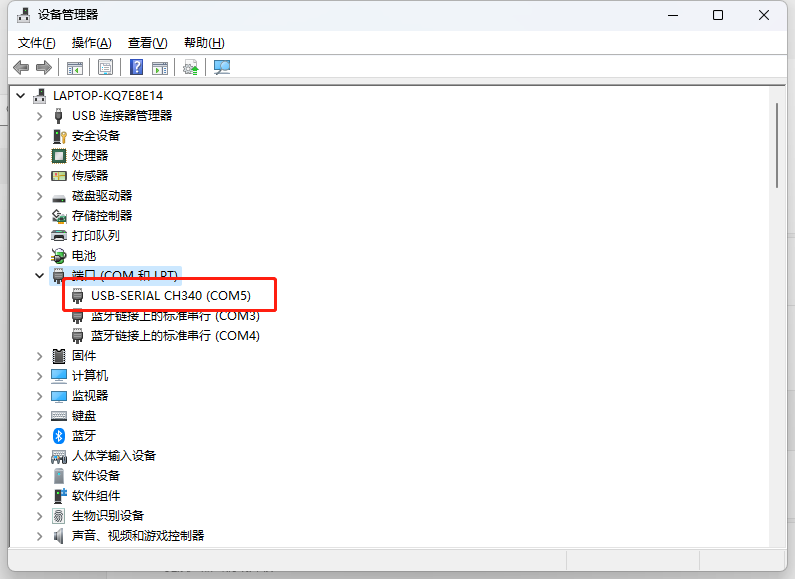 通过TypeC数据线,把电脑与BearPi-HM Nano连接。 附:打开电脑设备管理器,查看开发板的串口(请先安装CH341SER.EXE驱动)