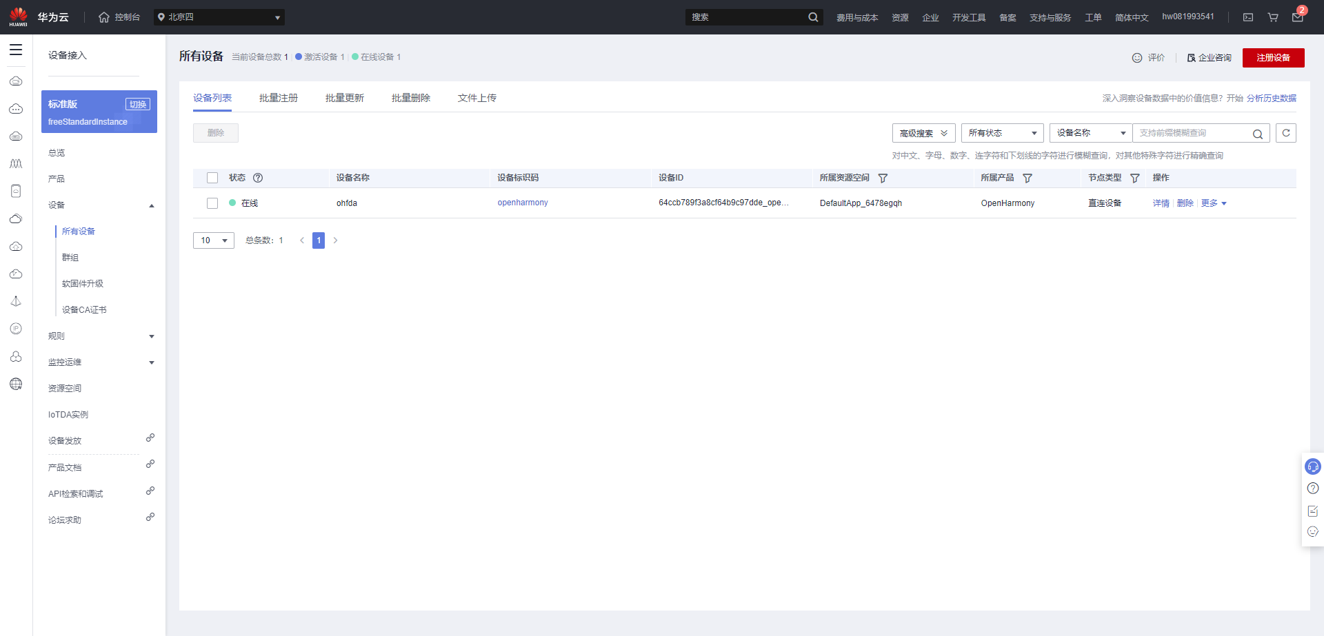 - 设备标识码:自定义,如“openharmony”