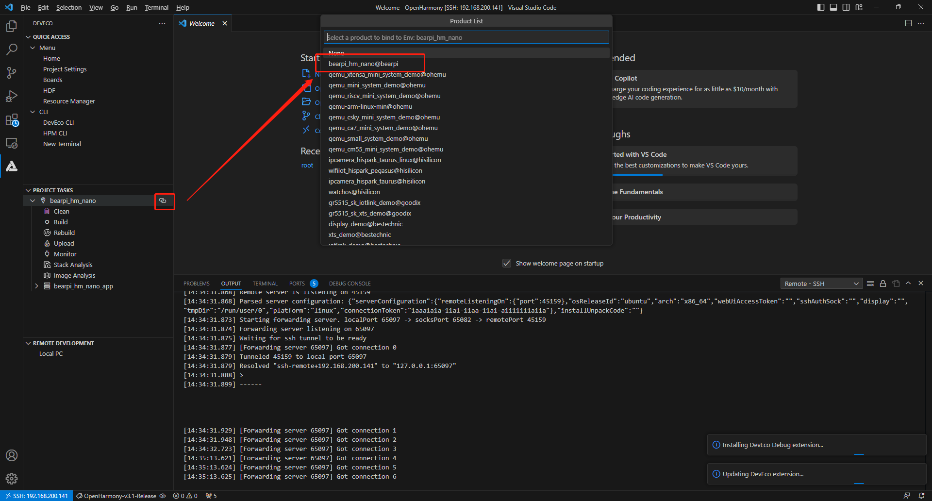 Product/产品选择bearpi_hm_nano。