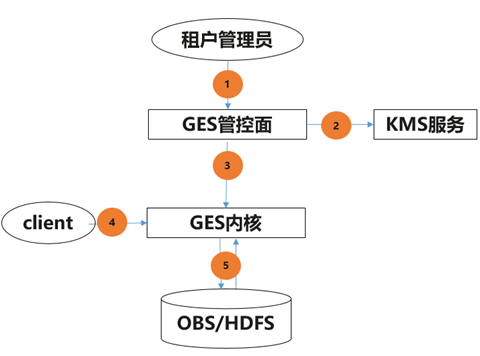 GES提供了基于KMS服务的数据加密方案,如下图所示: