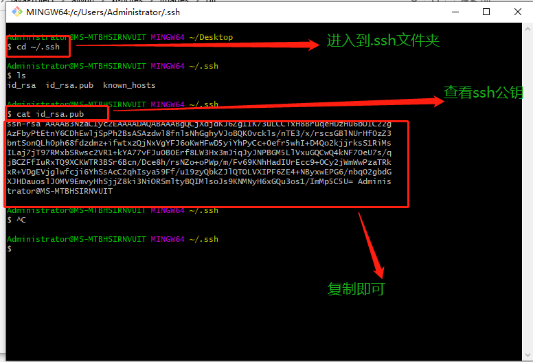 - 查看已有的公钥(基于RSA算法生成),在命令行中输入以下命令