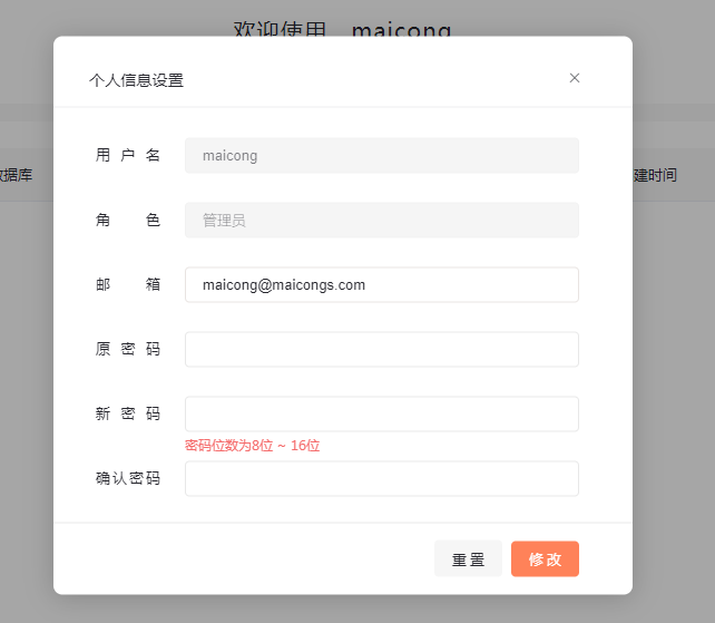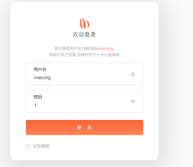 默认用户:maicong 密码随便输入