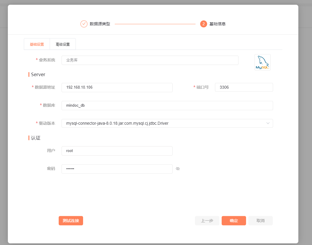 填写数据库信息