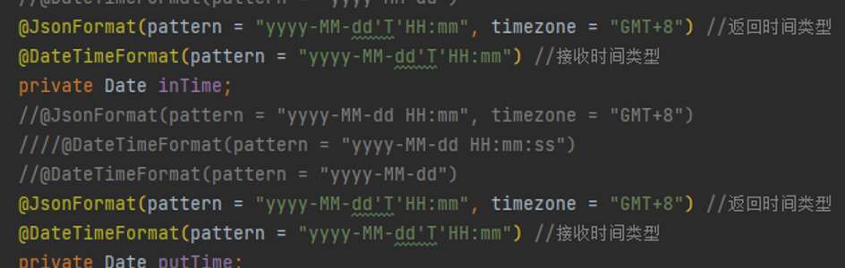 @JsonFormat(pattern = "yyyy-MM-dd'T'HH:mm", timezone = "GMT+8") //返回时间类型