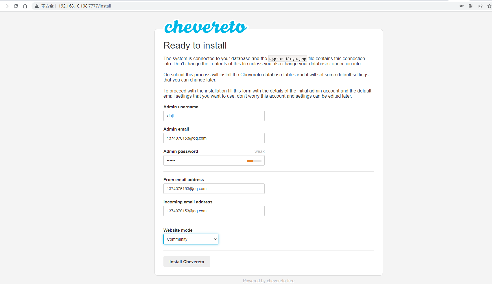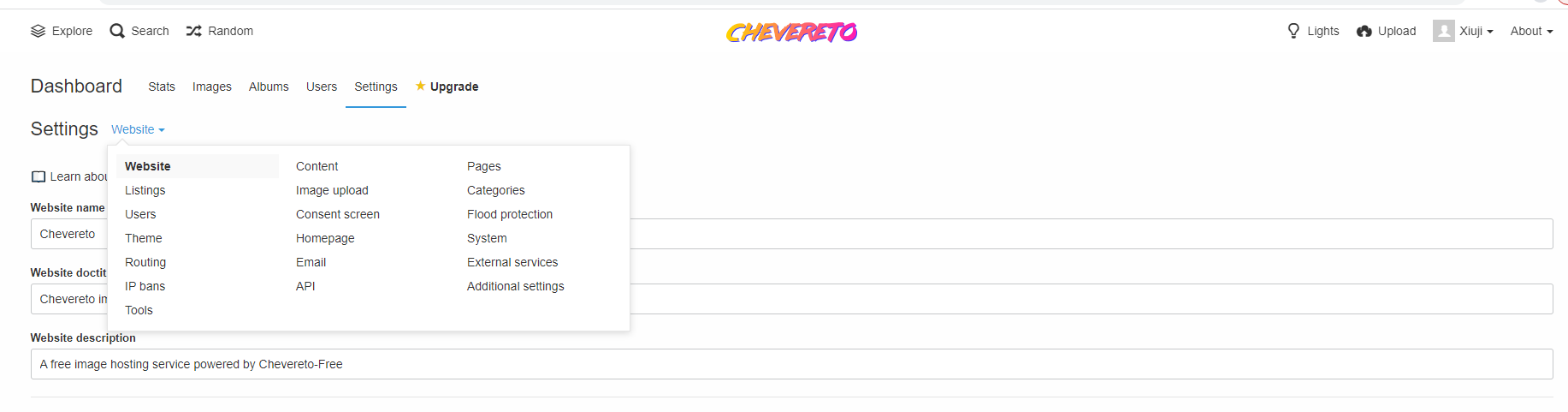经过尝试对比,最终选择了linuxserver/chevereto这个镜像,主要是简单方便,而nmtan/chevereto这个镜像是官方的,讲的也很详细,不过感觉没有前者方便,就没用上。更多详细配置可以去看 linuxserver/chevereto 镜像的说明,地址:https://hub.docker.com/r/linuxserver/chevereto