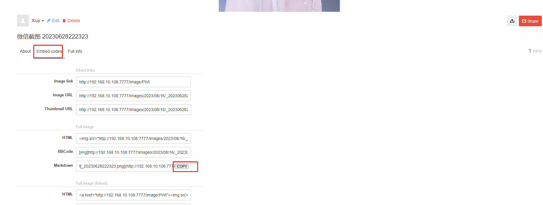 上传之后他给我们生成各个地方使用的代码,我们根据情况copy过去即可