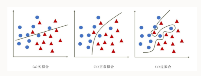 欠拟合、正常拟合、过拟合的表现形式: