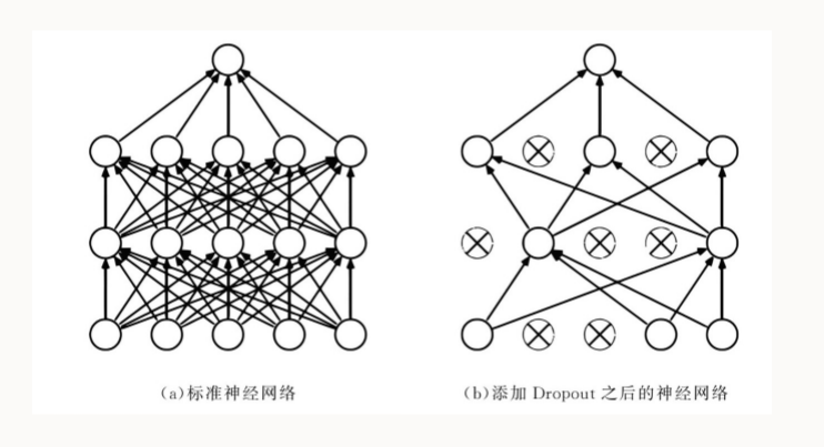 就是在训练过程中,丢弃一些神经元,就是上图中的X。这意味着任何一个神经元,都需要不依赖于其他特定的神经元才能进行有益的分类贡献。这迫使网络学习更鲁棒和有效的特征。