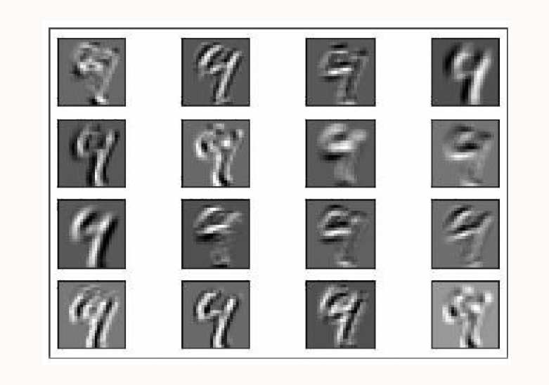 对第二层卷积后的可视化绘图的结果: