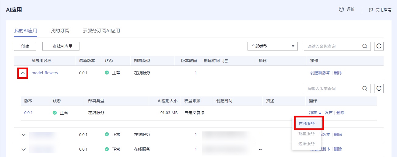 在AI应用服务中,进行在线业务的部署