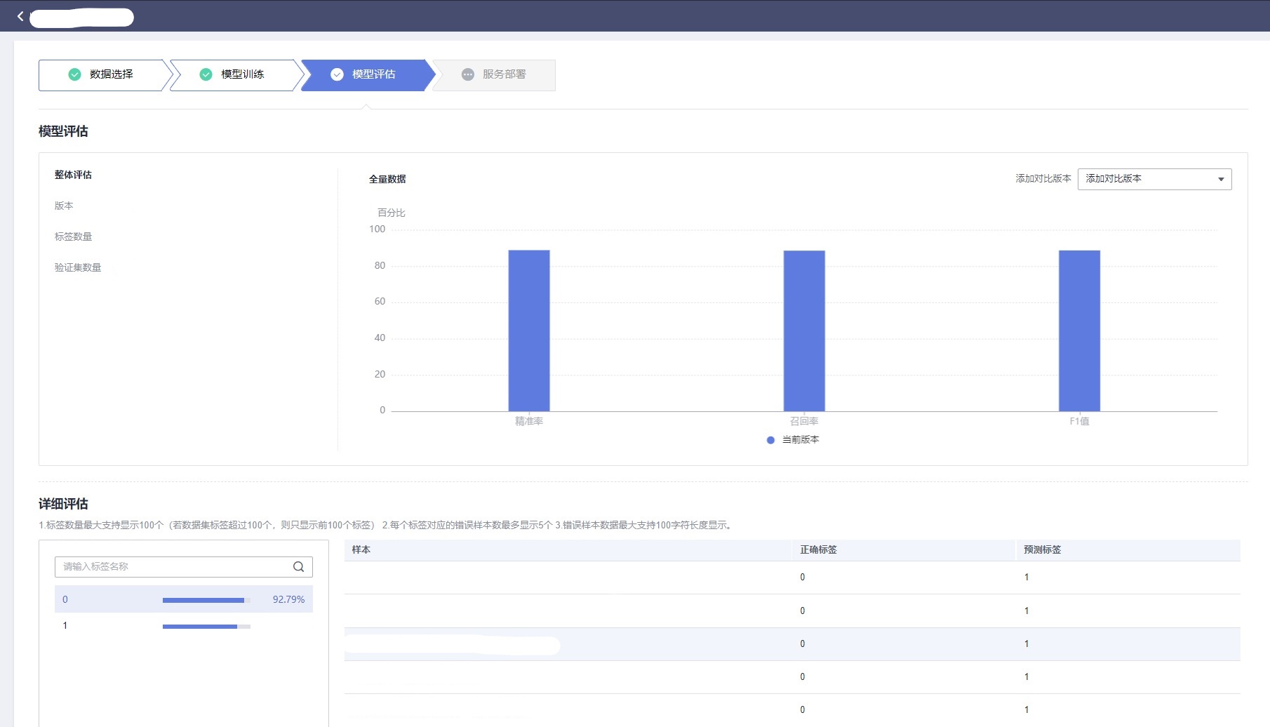 模型训练好后,可以通过柱状图进行评估结果的查询