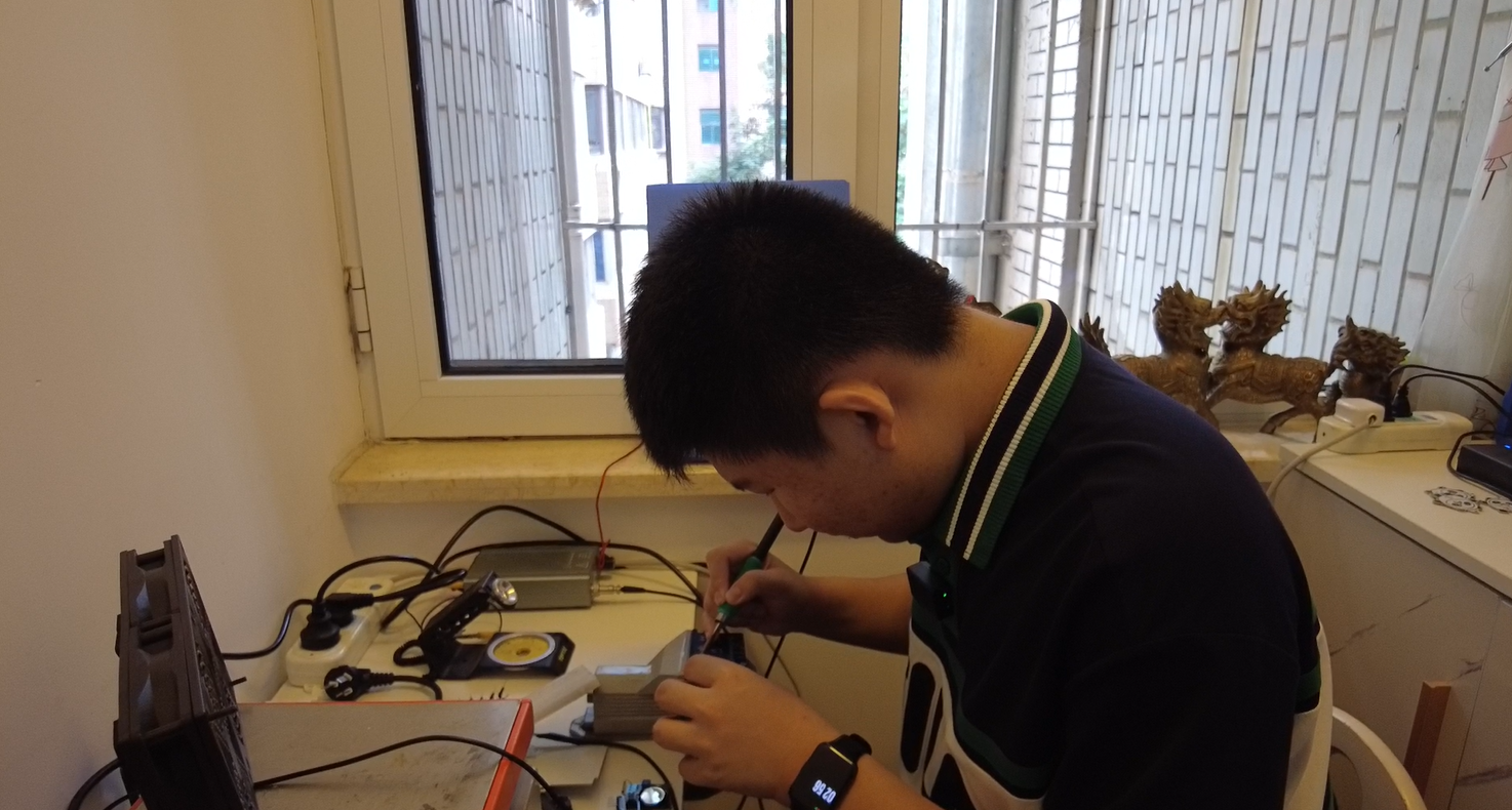 为了更好地研究这些技术,苏家祺把家里的一个小卧室打造成了自己的“工作室”,一眼望过去,各种设备器件令人目不暇接。“这是一个古董的指针式万用表,这是我平常用来听广播的无线电,这是一台3D打印机,这是我的焊台,升温速度非常快…”苏家祺兴致勃勃地介绍起他的这些宝贝,并随手拿起电焊工具,对着桌上的一块电路板DIY起来。