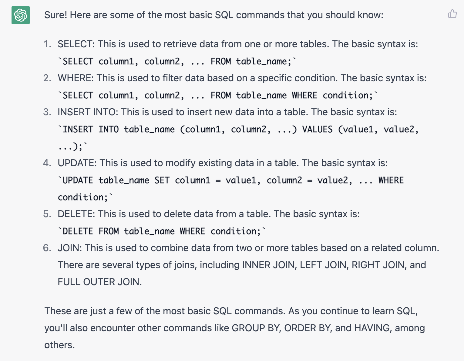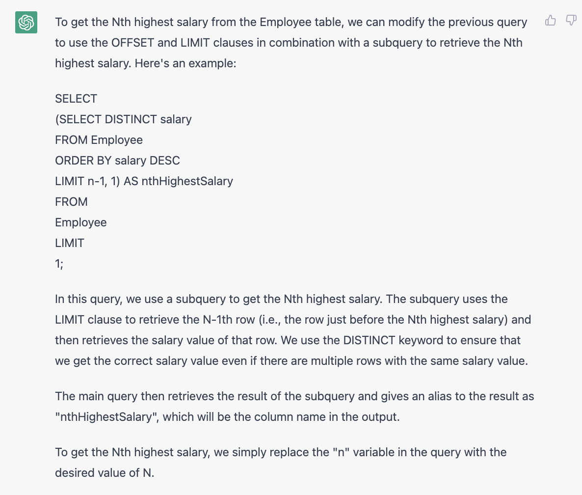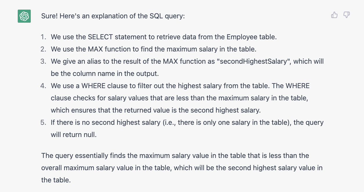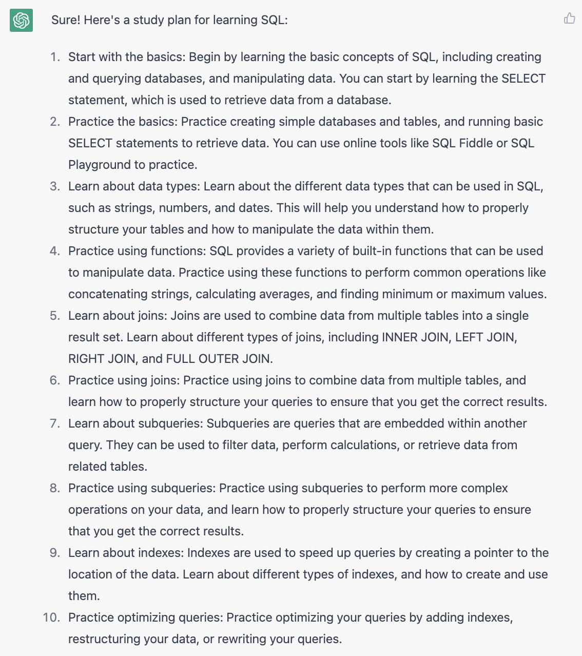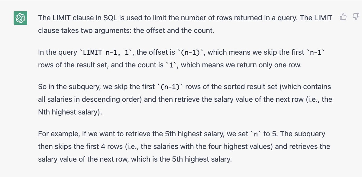 上面是我测试如果用ChatGPT来自学SQL的实录。