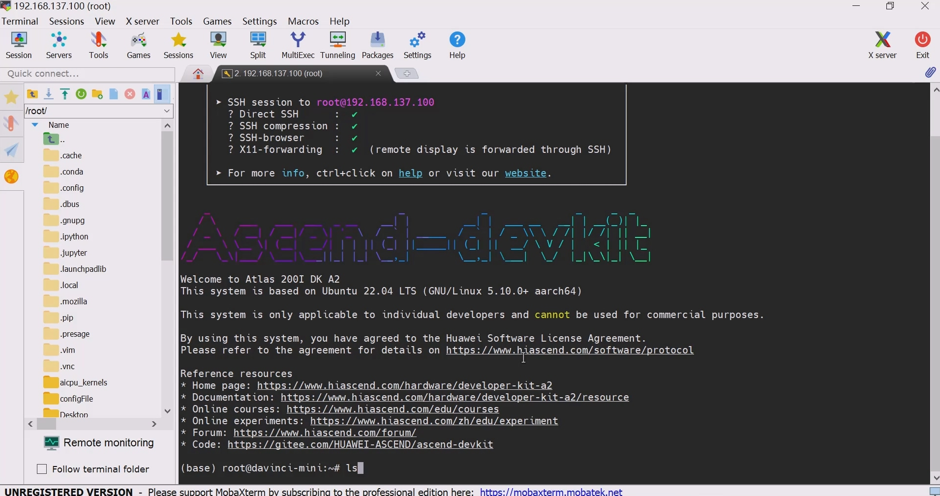 IP设置好后,可以使用SSH登录小滕了。镜像默认用户名是root,密码是Mind@123