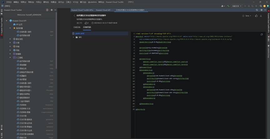 提供华为云SDK代码片段补全功能,SDK依赖包自动引入,加速用户集成华为云API。