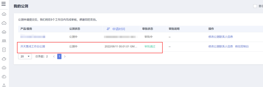 首先申请公测,申请通过后可看到如下界面