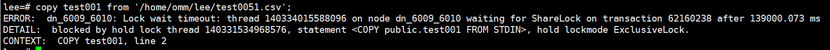 场景构造:session 1在事务内对列存表进行更新,不提交事务;session 2同样对列存表更新,会等锁超时;(只有更新的为同一CU时才会出现此场景)