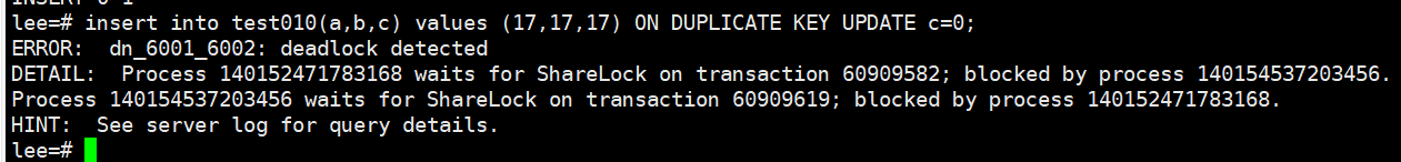 upsert的死锁现象:行存带主键约束或列存表场景下并发upsert,并发更新重复的数据,且不同事务内部更新的相同数据的顺序不同;