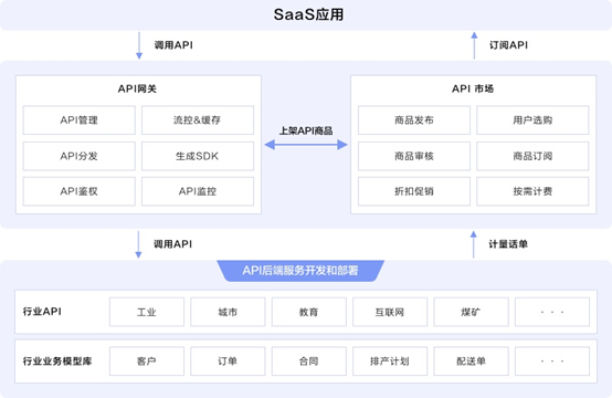 企业把自身能力以API服务的形式开放出来,通过API衔接应用开发者、系统集成商等,从而服务更多的商业场景,快速形成产业链,从而让企业以最小改动满足用户碎片化且日益增长的需求。