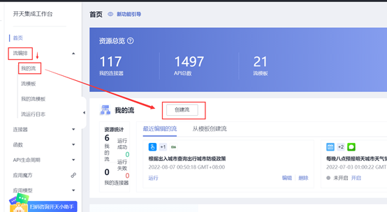 选择流编排-我的流-创建流;