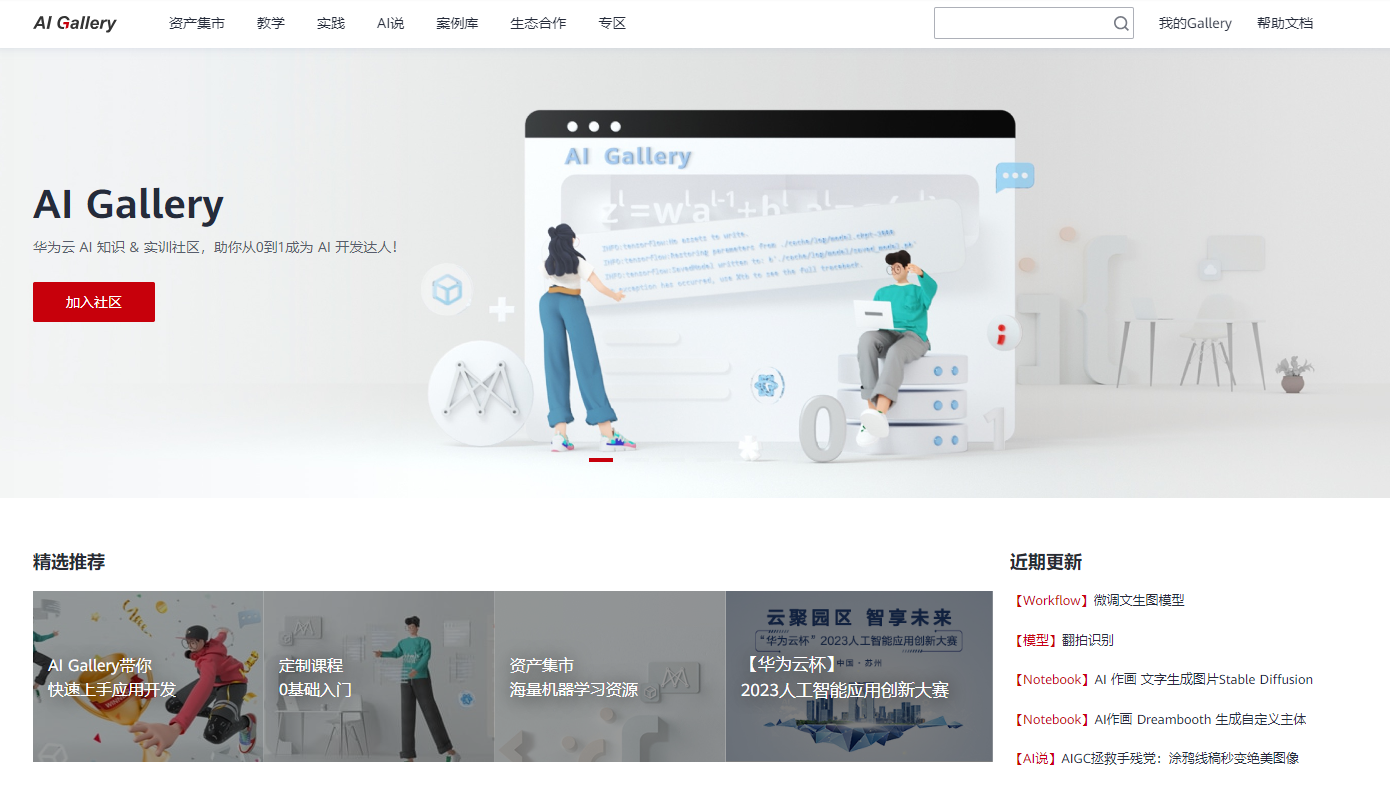 也可以前往华为云AI开发交流社区——👉AI Gallery,里面有很多算法、模型、notebook等资产(这些资产的运行依赖的就是ModelArts),也有课程和讨论区。