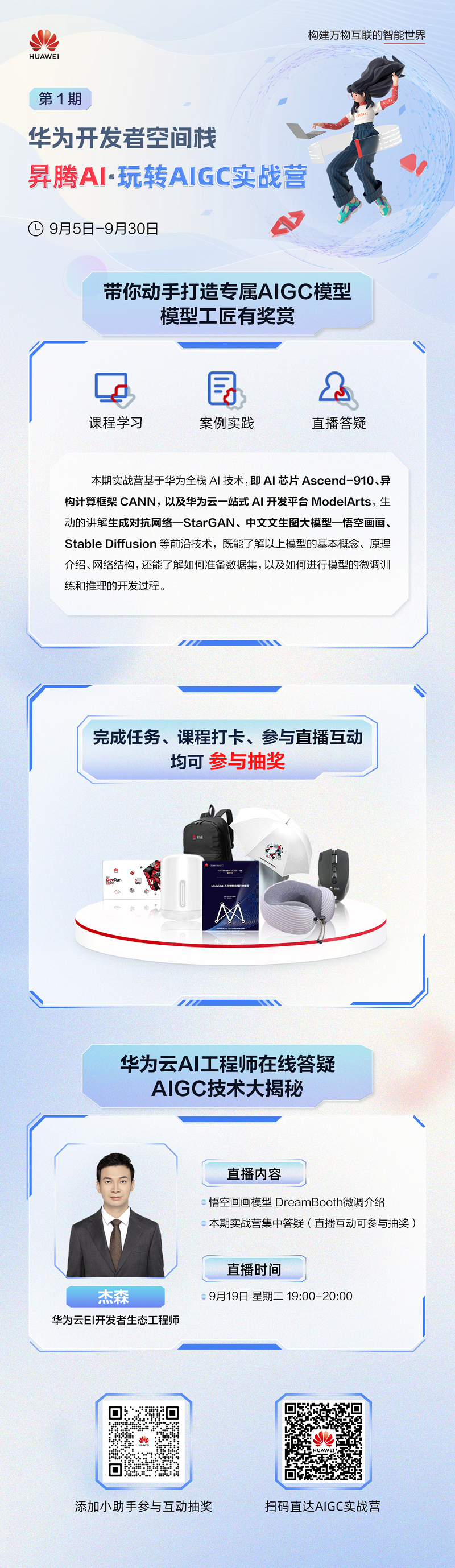 A:近期上线了👉昇腾AI·玩转AIGC实战营活动,后续陆续有更多活动推出,敬请期待。
