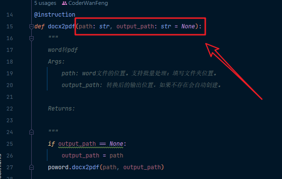 这次为了更好的帮助专业人员使用python-office,特别增加了Type Hints。如下图所示。👇