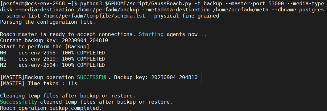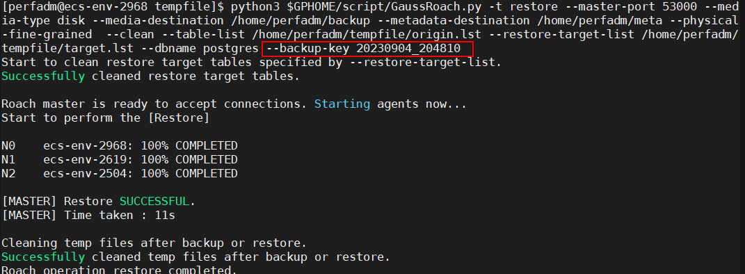 物理细粒度备份恢复可基于命令行参数实现,或者从管控面下发备份恢复任务。以命令行下发备份恢复任务如下: