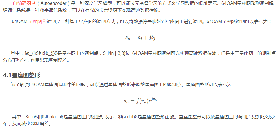 自编码器(Autoencoder)是一种深度学习模型,可以通过无监督学习的方式来学习数据的低维表示。64QAM星座图整形调制解调通信系统是一种数字通信系统,可以在有限的带宽资源下实现高速数据传输。