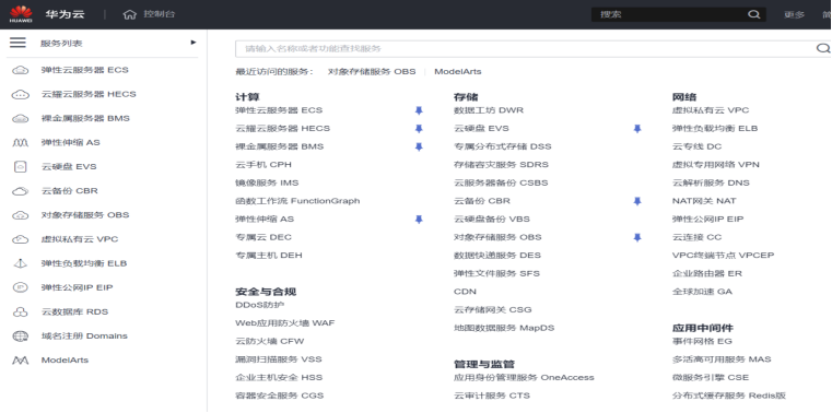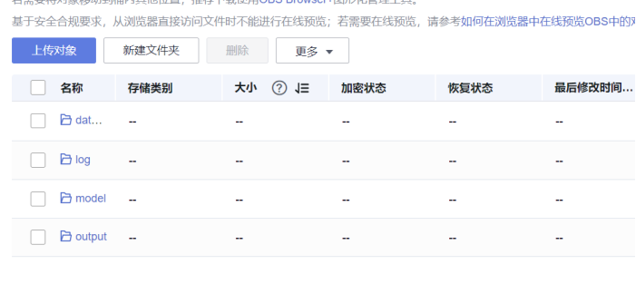 1.打开华为云中的mindspore,找到里面的对象服务器obs