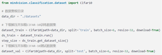 CIFAR-10数据集共有60000张32*32的彩色图像,分为10个类别,每类有6000张图,数据集一共有50000张训练图片和10000张评估图片。我们组考虑使用mindvision.classification.dataset.Cifar10接口下载并加载CIFAR-10数据集。