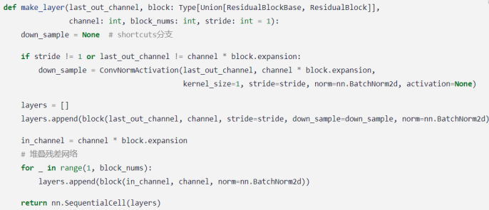 block表示残差网络的类别,包括ResidualBlockBase,ResidualBlock。