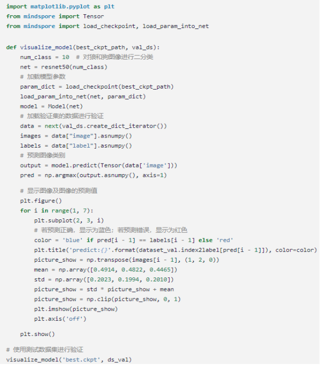 最后我们使用上述模型对cifar-10测试集进行预测,且将结果可视化,代码如下: