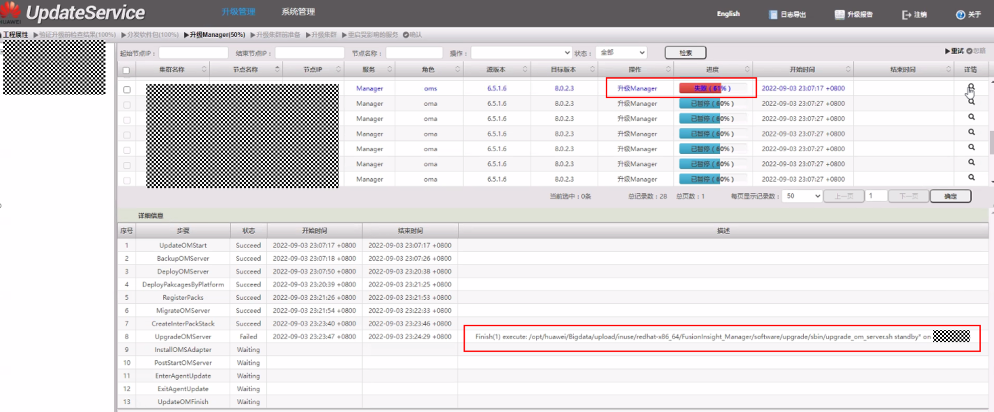 日志:/opt/huawei/Bigdata/update-Service/runlog/update-manager.log