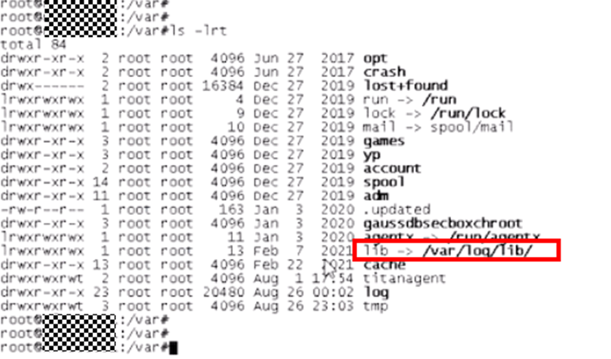 解决方案:这种目录不一致问题一般是环境上有人做了软链接,将/var/lib指向了/var/log/lib目录,整改软链接,将目录结构恢复正常即可