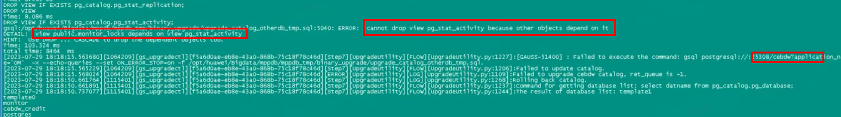 升级过程存在用户视图依赖系统视图,导致升级过程重建系统视图过程报错,升级失败