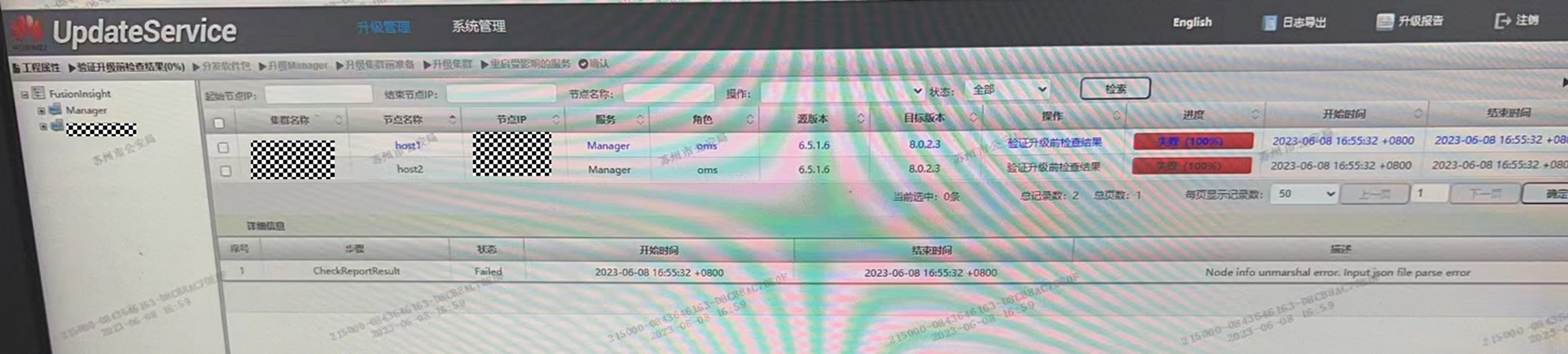 升级前巡检:使用FusionInsight Tool Prober工具进行升级前检查,如果存在不满足项需要提前修复不满足项。不影响业务,建议放到时间升级窗之前处理,不占用正式升级时间窗。