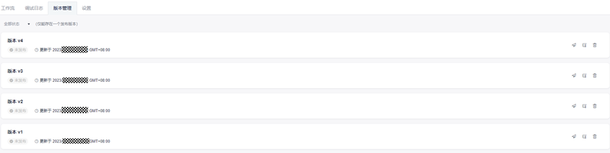5.发布版本,并在版本管理界面对各个版本的API编排工作流进行编辑