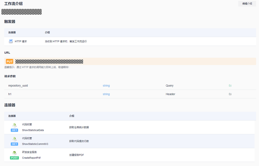 3.在“概览”中,对工作流进行预览,并可编辑工作流介绍,同时可查看触发器和连接器