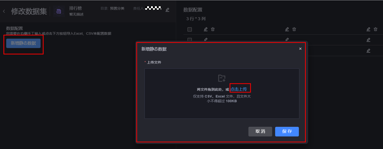 然后点击新增静态数据,上传我们已经准备好的足迹Excel文件。