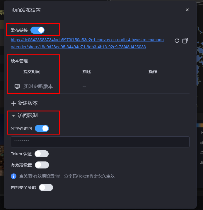 设置版本管理:可以是实时更新版本,也可以新建版本。