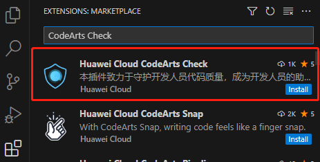 - 在vscode插件市场搜索“CodeArts Check”,点击安装;
