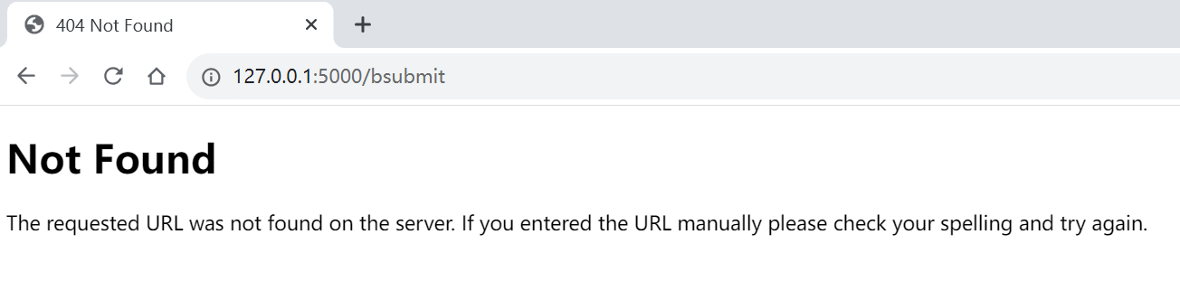 因为这里的submit是一个POST请求,这个时候使用GET请求方法的话,Flask 将会抛出 404 错误(Not Found)。这意味着 Flask 无法找到匹配的路由规则,因为请求方法不符合要求。