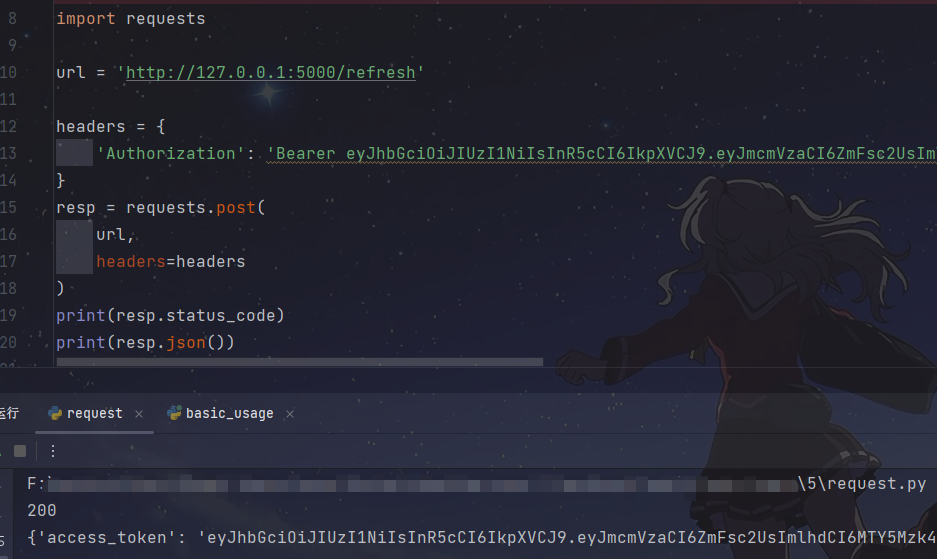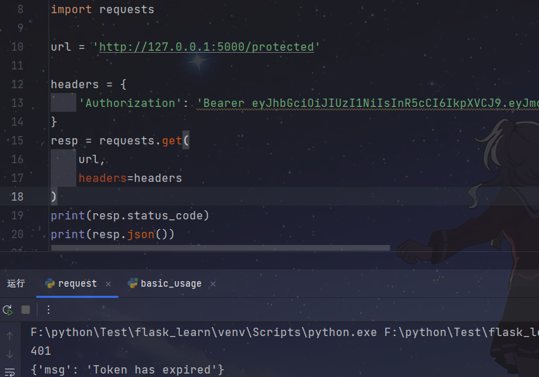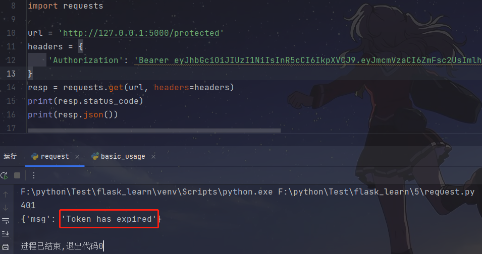 这一 part 将介绍 flask_jwt_extended 的基础用法,以及展示 JWT 认证通过与不通过、获取token等的操作。