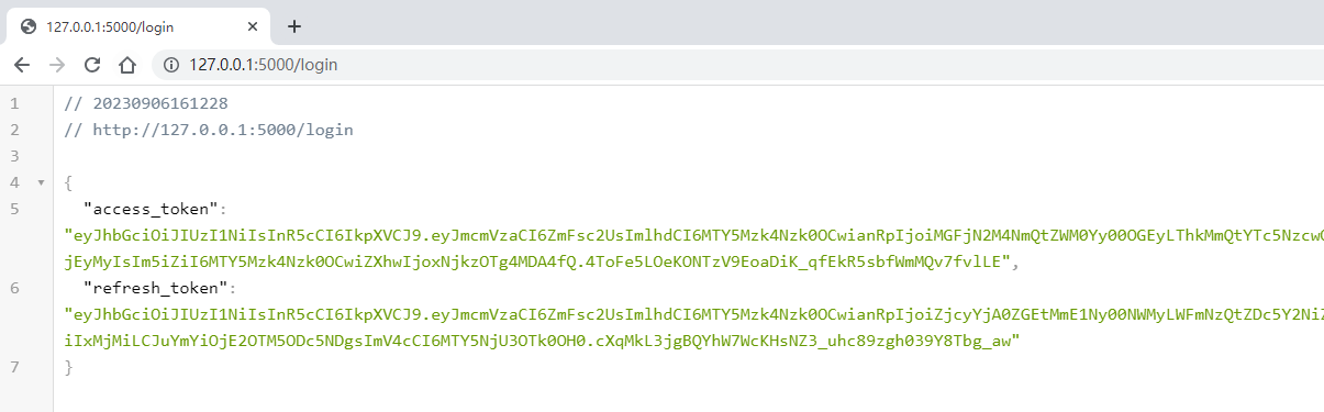 - 如果访问token(Access Token)过期,Flask-JWT-Extended会自动返回错误响应,不需要手动验证过期。