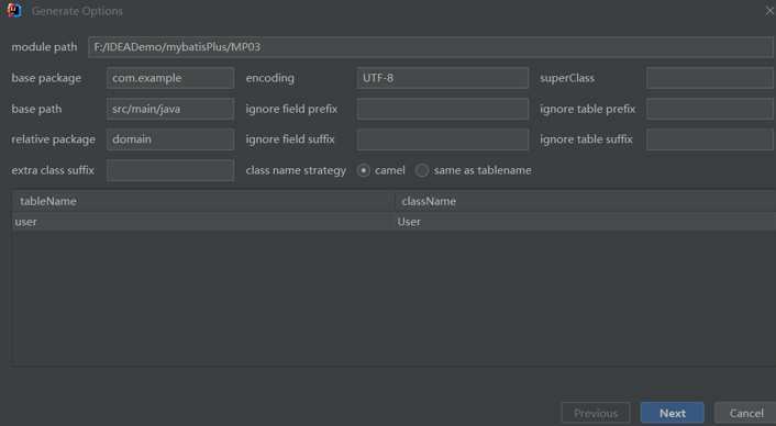 MybatisX逆向工程